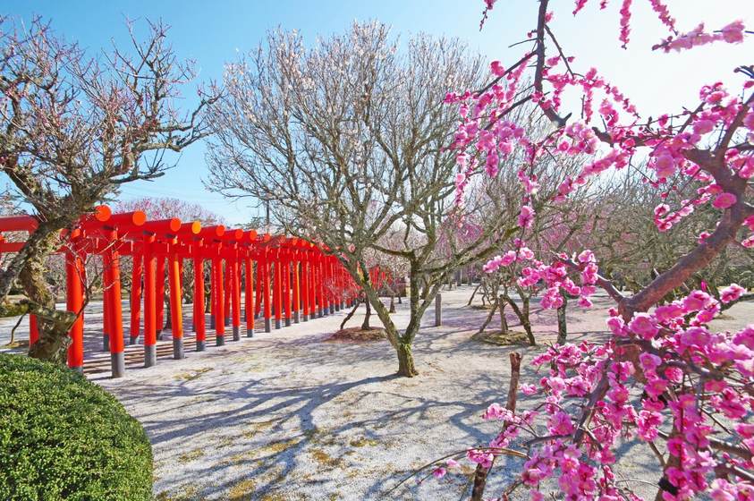 ★关于九州赏梅季节:九州的冬天,因纬度、高度与每年温度变化不同的关系会影响梅花盛开的快慢,各赏梅名所的花季也略不同,如位于太宰府的太宰府天满宫的花期通常是从1月下旬到3月初,请各位理解!