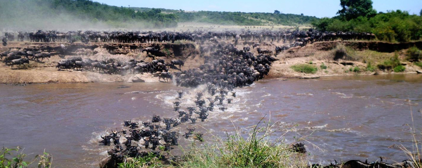 在塞伦盖蒂草原上发生一年一度的动物大迁徙是这个世界上最伟大的自然景观。每年的五六月之间,当旱季来临,塞伦盖蒂的食草动物(大约有150万只角马和斑马,30万只汤姆森瞪羚和3万只格兰特瞪羚)从中央平原向西部常年有水的地区迁徙;到七八月之间其中一部分又从塞伦盖蒂向马赛马拉草原迁徙,浩浩荡荡的动物大军形成震惊世界的壮丽景观。在迁徙旅途中,“千军万马”过马拉河的景象也可谓是大迁徙的一大亮点,将大自然最原始的优胜劣汰的生存法则演绎得淋漓尽致。