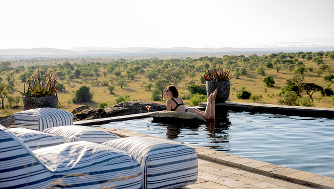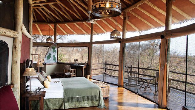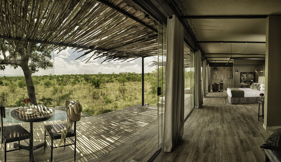 Mwiba Lodge 被称为是一个宁静、温馨的避风港,这个独特的小屋融合了传统和现代的设计元素,创造了一个奇特绝佳下榻之处,小屋内饰巧妙地与自然环境相融,从铺着亚麻布的斜臂沙发到雕琢华丽的木桌、层叠的室内灯光,给人绝佳的入住体验。这里的双人套房拥有宽敞的开放式布局,传统的帆布墙配以铜固定装置,大型浴缸配有私人室外淋浴,并且入住其中还能从硬木甲板上看到唯美的风景。在灰色石板内衬的无边游泳池,客人可以里欣赏到不断游行的野生动物。