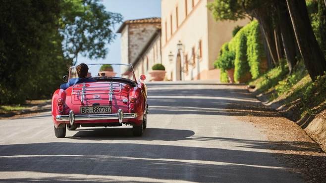 这座古典大气的城堡酒店坐落于连绵起伏的山谷丘陵中,占地 1700 公顷,漫无边际的葡萄园和橄榄树,以及四周古朴田园农庄,构成了一组优美动人的田园牧歌。