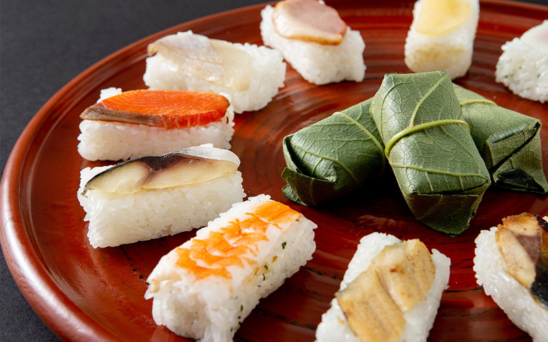 精选老牌柿叶寿司店铺,体验手作柿叶寿司。这家老牌店铺创业于1861年,在江户时代末期就在奈良当地售卖寿司河鱼和干货了,现在奈良县内有十几家门店。