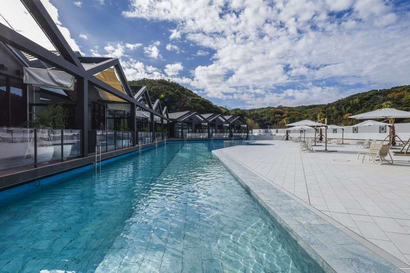 作为一家日式温泉旅馆,滨千鸟之汤 海舟结合了许多洋式设计,使住宿体验更舒适。旅馆位于白滨海岸线上向太平洋延伸的海崖之上,徐徐海风也吹不散千年温泉的袅袅白雾,犹如一叶海上扁舟的“蓬莱仙岛”。