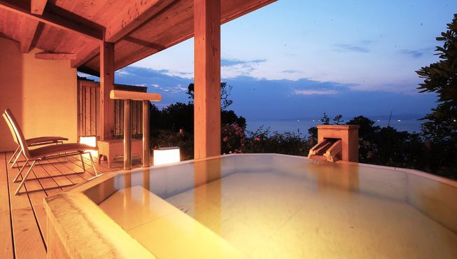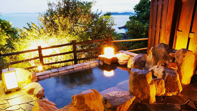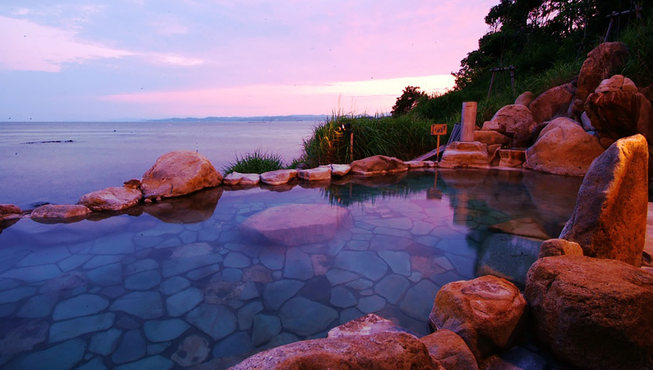 日本三大古汤之一的白滨温泉,面对大海,在房间内泡着私汤。白滨拥有着得天独厚的自然风光、温泉和海洋娱乐设施。该地面朝太平洋,大自然造就了无数的壮观美景。