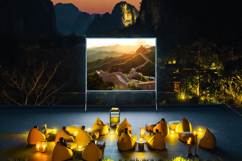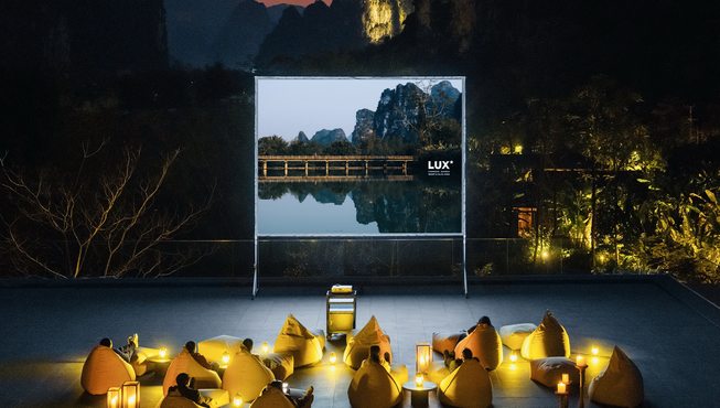 暮色垂落,山风凉逸,漫步至度假村三楼露台,在星空影院中沉浸天幕童话,光影流转,群山隐约,酒店将为您播放您喜爱的专属音乐或歌单,一边小酌一边欣赏无与伦比的浩瀚星空。