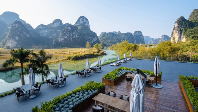 崇左丽世秘境酒店依偎于明仕河畔,被喀斯特地貌环抱,骑行于明仕田园或体验在地垂钓,一幅幅隽美的山水画在眼前展开,尽享自然田园的野趣。
