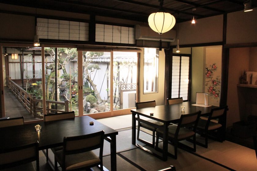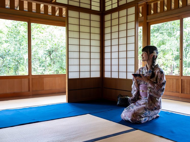 馥府京都细心地保留了此地原有的池泉庭园,池水的一隅还有一座日式建筑的别屋「八重一重」。别屋坐望庭园的四季美景,不仅可以作为和风洋溢的酒吧恭迎宾客,还能作为欣赏艺妓的舞蹈、学习花道、茶道、香道等体验京都文化的场地使用。