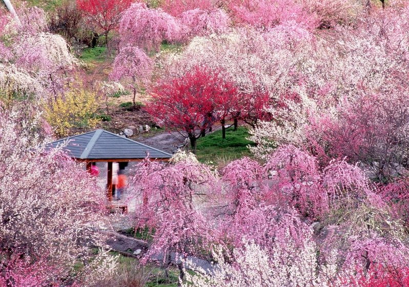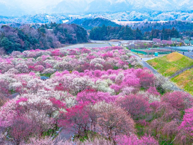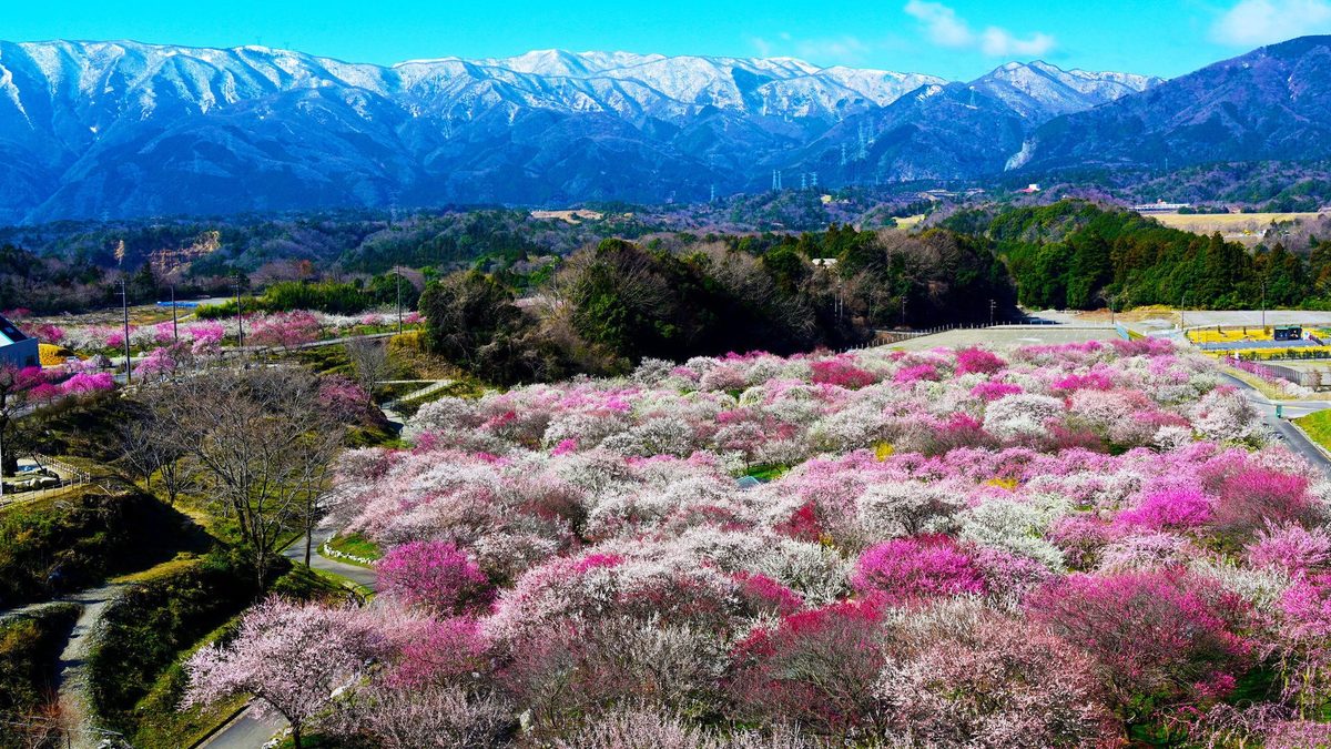 下午:前往员弁市的梅林公园(约1.5小时车程) 这里是日本东海地区最大梅园,可遥望铃鹿山脉,占地面积约8座东京巨蛋,有上百种超4,500棵梅花树,2月中旬至3月中旬,配合花季举办“梅花祭”。