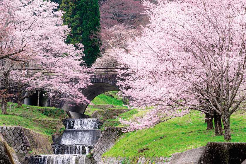 下午:前往岐阜县的霞间溪公园(约1小时车程),以约3000棵山樱、彼岸樱、大山樱、枝垂樱等品种的樱花而闻名。溪流沿岸布满许多种类的樱花一齐盛开。樱花的花开情况,从远方看起来,简直像是彩霞仙境因此得名。霞间溪是日本樱花协会认定的赏樱名所百选之一。根据往年经验,最佳赏樱期大约在3月底至4月上旬。