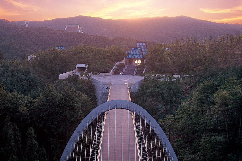 上午:从琵琶湖到甲贺(约1.5小时车程),MIHO美秀美术馆创办人为小山美秀子,由美籍华裔建筑师贝聿铭设计。美术馆别具一格之处在于其建筑80%都埋藏在地下,但它并不是一座真正的地下建筑,而是由于地上是自然保护区,在日本的自然保护法上有很多限制而采取为要保护自然环境及与周围景色融为一体的建造方式。这一设计清楚体现设计者贝聿铭的概念:创造一个地上的天堂。他第一次到这个地方时,就很感动地表白:“这就是桃花源“。她也获得了米其林最高3星评定。