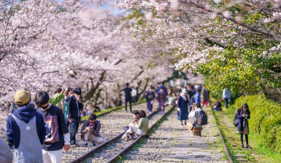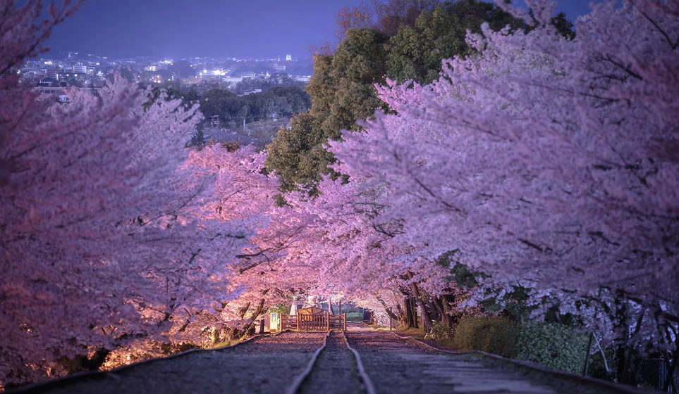上午:如果在京都只能选一处赏樱花!那醍醐寺是大多数人的答案。醍醐寺兴建于 9 世纪。它是真言宗醍醐派的总本山。它也是京都最大的寺庙建筑群之一,遍布京都市东南部的整座醍醐山。院内共有 80 多栋建筑物,分为下醍醐和上醍醐建筑群。寺庙坐落在大自然中,庭院则传达着四时之美。蹴上铁道,在全长582m废弃的铁道上,粉红色的花瓣随风飞舞,手牵手漫步在铁轨上,留下铁道与樱的合影,一起感受春樱的缤纷浪漫。