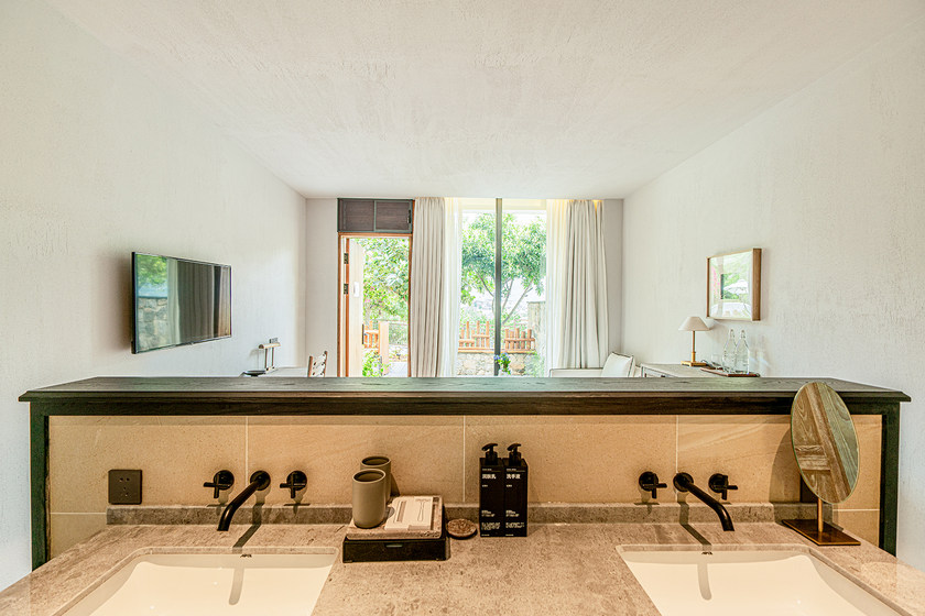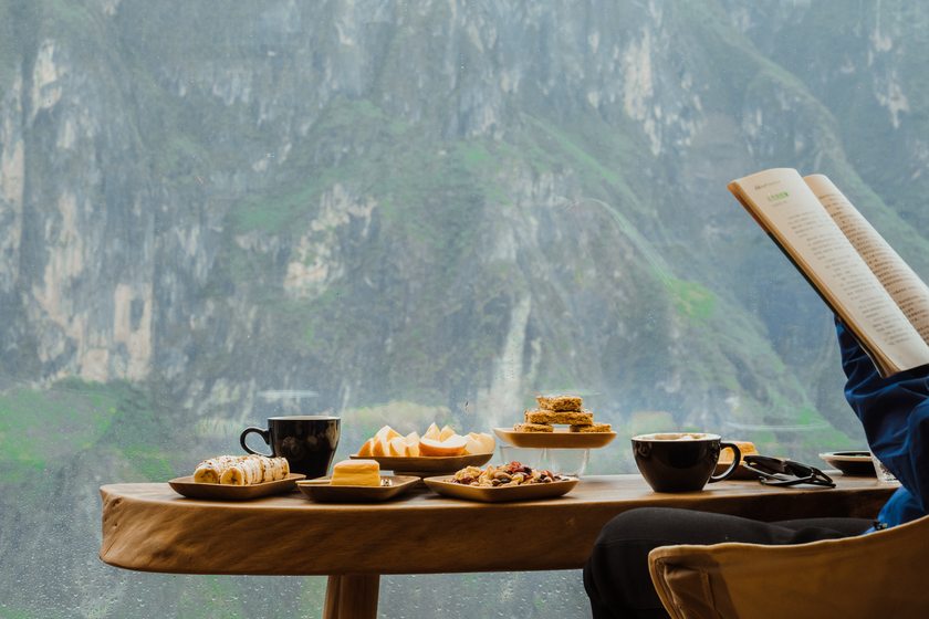 想象一下,光线充足的房间里可以看到传统的瓦片屋顶和常绿的山峦、大自然的造物、色香味俱全的美食,甚至还有一个户外丽世咖啡馆。